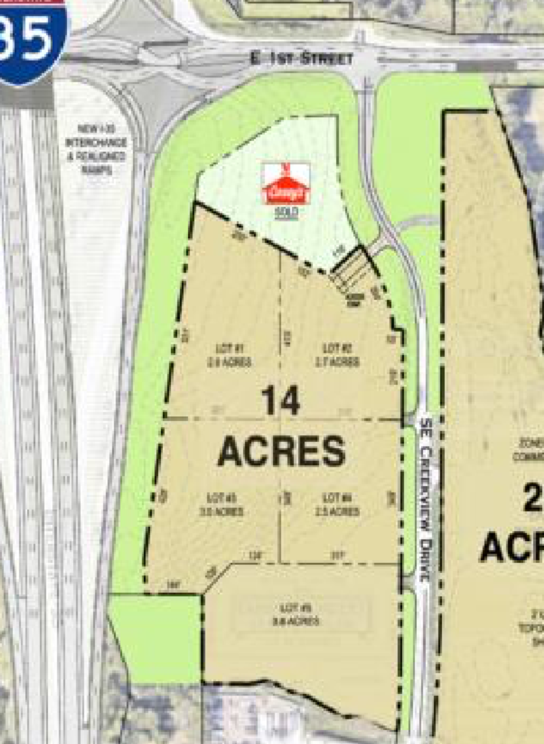 Interstate 35 frontage at the newly rebuilt First Street exit in fast growing Ankeny.